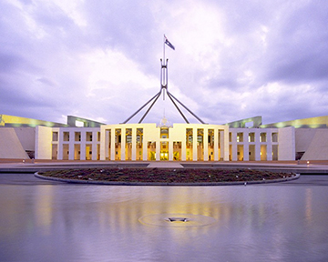 Parliament House is the meeting place of the Parliament of Australia, located in Canberra, the capital of Australia.